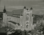 Description :VUE DE LA FACADE ET D'UN COTE DE LA CATHEDRALE ST-MICHEL DE SHERBROOKE ON VOIT AUSSI UNE PARTIE DE L'ARCHEVECHE