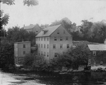 Description :LA MANUFACTURE DE LA MAGOG WOOLEN MILLS SUR LE BORD DE LA RIVIERE MAGOG. ELLE COMPTE QUATRE ETAGES ET DEMI ET EST EN BOIS. EN AVANT-PLAN, LA RIVIERE MAGOG. EN ARRIERE-PLAN A GAUCHE, LE BUREAU DE LA MAGOG WOOLEN MILLS SUR LA RUE BELVEDERE. PRES...