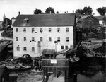 Description :A L'AVANT-PLAN, MARE D'EAU. AU CENTRE, LA RUE WINDSOR ENVAHIE PAR L'EAU. UNE AFFICHE AU-DESSUS D'UN IMMEUBLE DE BOIS A PIGNON ANNONCE: CARIAGE FACTORY. A DROITE, DERRIERE UNE SERIE DE BATIMENTS A PIGNON, LE PONT AYLMER COUVERT. ON APERCOIT DEU...