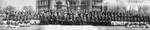 Description :PHOTO PANORAMIQUE MONTRANT LA FOULE DES ECOLIERS, ELEVES, ANCIENS ETUDIANTS, ENSEIGNANTS DE L'ECOLE ST-ROMUALD. DERRIERE EUX, VUE PARTIELLE DE L'EGLISE ST-ROMUALD ET D'AUTRES EDIFICES. LES INVITES PORTENT UN RUBAN A LA BOUTIERE. LES ECOLIERS, ...