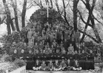 Description :GROUPE DE PRETRES, DE LAICS ET D'ENFANTS DE CHOEUR RASSEMBLES SUR LA PELOUSE, SUR 7 RANGS.