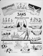 Description :IMAGES GRAPHIQUES DES PRINCIPALES REALISATIONS ATTRIBUEES A JOHN S. BOURQUE DURANT SON PREMIER MANDAT: ARENA ET STADE DE SHERBROOKE, PONTS, ROUTES. AU CENTRE DE L'AFFICHE, DESSIN MONTRANT BOURQUE. DEUPLESSIS EST REPRESENTE EN PREUX CHEVALIER S...