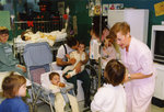 Description :QUELQUES ENFANTS SONT DANS UNE SALLE, ACCOMPAGNES D'INFIRMIERES ET DE PARENTS.