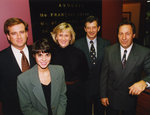 Description :LE DUO RANCOURT-GERIN POSE EN PRESENCE DE ME PETER DOWNEY, ME HELENE LACROIX ET ME JOHANNE LEBEL DEVANT L'ANNONCE DE LEUR ETUDE.