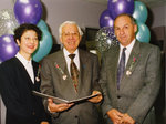 Description :AU CENTRE, RAYMOND METRAS, PRESIDENT DU CONSEIL D'ADMINISTRATION DU NOUVEAU CENTRE JEAN-PATRICE CHIASSON ET MAISON ST-GEORGES, ENTOURE DE DEUX MEMBRES DU C.A.: ROSELYNE LECOMPTE, A GAUCHE, ET LOUIS ROSA.