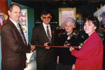 Description :SUR LA PHOTO, DE GAUCHE A DROITE: HENRY MUSTY, DAVID DREW (LE NOUVEAU MAIRE DE LENNOXVILLE), BEV MUSTY ET KATHY MUSTY-DREW.