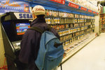 Description :UN ADOLESCENT ESSAIE UNE NOUVELLE CASSETTE VIDEO DANS LE MAGASIN ET A SA DROITE LE RAYON DE CASSETTES.