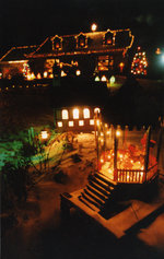 Description :DEPUIS CINQ OU SIX ANS, RITA ET ROBERT BRUS DECORENT LEUR PROPRIETE POUR LA PERIODE DES FETES. EN ARRIERE-PLAN, LA MAISON DECOREE D'AMPOULES MULTICOLORES ET EN AVANT-PLAN, UN PETIT VILLAGE DE NOEL.