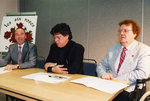 Description :L'ORGANISATION DU TOURNOI DE GOLF "SOUS LES PALMIERS" A REMIS UNE CONTRIBUTION FINANCIERE A LA GRANDE TABLE. DE GAUCHE A DROITE; GINETTE NOEL, DIRECTRICE GENERALE DE LA GRANDE TABLE, GILLES VACHON, VICE-PRESIDENT DU TOURNOI, ROBERT JOLIECOEUR,...