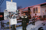 Description :12.1- M. HUBERT LESPERANCE POSE ICI PRES DES PHOTOS DE JEREINIE QUI A ETE ATTEINT DE MENINGITE A L'AGE DE 3 MOIS. LES PERSONNES PEUVENT FAIRE UN DON. UNE BOITE EST PLACEE SOUS LES PHOTOS. EN ARRIERE-PALN, LA MAISON ILLUMINEE DE JACQUELINE ET H...