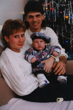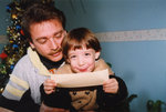 Description :EN AVANT-PLAN, MARIO DUQUETTE ET SA FILLE ANOUK POUR QUI IL A LACHE DROGUES ET ALCOOL. DERRIERE EUX, UN SAPIN DE NOEL.