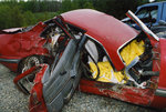 Description :AUTO ROUGE ECRASEE LORS D'UN ACCIDENT.