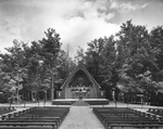 Description :VUE D'UN PETIT AUTEL EN BOIS A L'EXTERIEUR AU SANCTUAIRE DE BEAUVOIR
