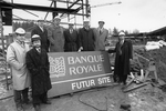 Description :A L'AVANT-PLAN A GAUCHE, NORMAND POMERLEAU DU GROUPE HERVE POMERLEAU, DENIS LAVENTURE, DIRECTEUR A LA BANQUE ROYALE. A L'ARRIERE-PLAN, FRANCOIS ARMAND ET CAMILLE TAILLON, JEAN-PIERRE BEGIN ET ANDRE CARDINAL.