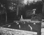 Description :NICHE RELIGIEUSE AVEC LA VIERGE MARIE DEVANT LAQUELLE SE TROUVENT DES MOUTONS EN PLATRE. ON VOIT AUSSI DES INVOCATIONS RELIGIEUSES ECRITE EN LATIN