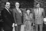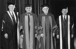 Description :QUATRE HOMMES PRENANT LA POSE. DE GAUCHE A DROITE : WILLIAM I.M. TURNER, CHANCELIER DE L'UNIVERSITE BISHOP, RAY HNAYTYSHYN, GOUVERNEUR GENERAL, L'ARCHEVEQUE MICHAEL PEERS, PRIMAT DE L'EGLISE ANGLICANE AU CANADA, ET LE RECTEUR HUGH SCOTT.