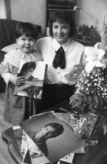 Description :LA MERE ET LA FILLETTE PRENAT LA POSE. LA FILLETTE DE 6 ANS TIENT DES POSTERS DE ROCH VOISINE. ELLE S'APPELLE MARIE-EVE BOISVERT ET SA MERE HELENE MENARD.