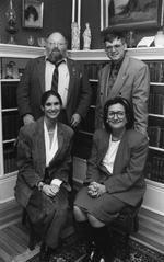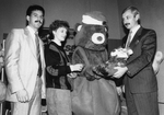 Description :DE GAUCHE A DROITE : JEAN LANDRY, LINDA HUBERT, LA MASCOTTE L'OURSON THEODORE ET GISLAIN GAGNON.