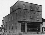 Description :VUE EXTERIEURE DE L'EDIFICE ABRITANT LE BUREAU DE LA COMPAGNIE ET l'ENTREPOT DE KIRKLAND LAKE, ONTARIO.