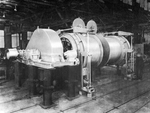 Description :VUE DE L'ARRIERE D'UN TREUIL ELECTRIQUE CANADIAN INGERSOLL-RAND DE TYPE PE-1. PLUSIEURS PARTICULARITES CARACTERISENT CE TYPE DE TREUIL: CHANGEMENT DE VITESSE SIMPLE, TAMBOUR DOUBLE ET PARALLELE, EMBRAYAGE TRANSMIS PAR FRICTION ET ACTIONNE PAR ...