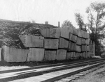 Description :25 GROS BLOCS DE GRANITE SONT EMPILES A COTE DES RAILS SITUES A COTE DE L'EDIFICE #4. CERTAINS SONT RAYES, D'AUTRES TROUES.