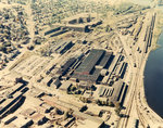 Description :VUE EN PLONGEE DU COMPLEXE INDUSTRIEL LONGEANT LE LAC DES NATIONS. AU PREMIER PLAN, LA SHERBROOKE MACHINEY LTD. AU CENTRE, LA RAND AVEC SON NOUVEAU STATIONNEMENT A GAUCHE. DERRIERE CELUI-CI, LA MACKINNON STRUCTURAL STEEL CO. LTD., PUIS L'ORIEN...