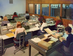 Description :L'INTERIEUR DU DEPARTEMENT DES ORDINATEURS SOUS DES ANGLES DIFFERENTS. - 6.1 - VUE D'ENSEMBLE DE LA SALLE OU LES SECRETAIRES MANIPULENT LES CARTES PERFOREES POUR ENTRER LES DONNEES. EN HAUT A DROITE, UNE CLOISON PARTIELLEMENT VITREE NOUS PERME...