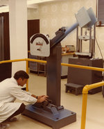 Description :LE LABORATOIRE SOUS DEUX ANGLES DIFFERENTS. - 7.1 - UNE EMPLOYEE VERIFIE LE CALIBRE DE QUELQUES CALIBREURS. - 7.2 - UN EMPLOYE VERIFIE LA RESISTANCE. A NOTER LES SACS TRANSPARENTS RECOUVRANT SES CHAUSSURES.