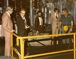 Description :2.1 - VISITE INDUSTRIELLE. DE GAUCHE A DROITE : H. OLSSON, PRESIDENT USWA, P. MAROIS, MINISTRE AU GOUVERNEMENT DU QUEBEC, G. GOSSELIN, DEPUTE DE SHERBROOKE, G. HARVEY, DIRECTEUR DES RELATIONS INDUSTRIELLES DE LA RAND ET M. ROY, DE C.A.T. SHERB...