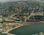 Description :AU CENTRE, LES USINES D'ACIER DU QUARTIER : SHERBROOKE MACHINERIES, UNITCAST, HOOPER ET RAND. A L'AVANT-PLAN, LE LAC DES NATIONS, THIBAULT MARINE, LA GARE DU C.P., GENEST-NADEAU LTEE (EDIFICE GRIS A GAUCHE) ET DES RESERVOIRS DE PETROLE. A L'AR...