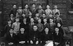 Description :CLASSE DE JEUNES ECOLIERS ET D'UN ECCLESIASTIQUE, LE FRERE HUBERT, DEVANT UNE BATISSE EN BRIQUE. PREMIER RANG: ? MASSON, EMILE LEMIEUX, FRERE HUBERT. DEUXIEME RANG: ? GAUVIN ( QUATRIEME) ET ? BLAIS (CINQUIEME). TROISIEME RANG: PAUL-EMILE SEVIG...