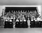 Description :GROUPE DE FEMMES ET DE RELIGIEUSES REUNIES A L'ECOLE SAINTE-JEANNE-D'ARC, SITUEE DANS L'ECOLE RACINE, DE LA RUE KITCHENER. IL Y A SEPT RELIGIEUSES DE LA CONGREGATION DE NOTRE-DAME ET DEUX FILLES DE LA CHARITE DU SACRE-COEUR. PREMIER RANG: S.S....