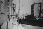 Description :VUE SUR UNE PARTIE D'UN EDIFICE OU IL EST INSCRIT: ORLANDO CIGAR ET W.R W.... LA FACADE EST SITUEE AU COIN DES RUES WEBSTER ET MEADOW. DES VOITURES ANCIENNES SONT STATIONNEES DANS LA RUE.