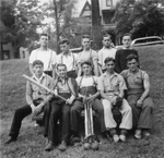 Description :EQUIPE DE BALLE MOLLE. DE GAUCHE A DROITE: ?, ?, GERARD VALLEE, ?, PAUL-EMILE SEVIGNY, ?, PRESIDENT DU SYNDICAT.