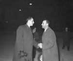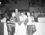 Description :NNGF763: PAUL LAMARCHE (A DROITE) INSTRUCTEUR DES RAPIDES DE LACHINE, FELICITE IVAN DUGRE, INSTRUCTEUR-GERANT DU SAINT-FRANCOIS, APRES LA FINALE. NNGF764 ET NNGF765: MEMBRES DU SAINT-FRANCOIS REGROUPES POUR UNE PHOTO D'EQUIPE DANS LEUR VE...