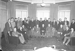 Description :NNGF778: MEMBRES DU SAINT-FRANCOIS REUNIS POUR UNE PHOTO AU CHATEAU FRONTENAC, LE 27 AVRIL 1947. PREMIERE RANGEE: LUCIEN DUGRE, COLIN CAMPBELL, FOREST KEENE, LE CONSEILLER PAUL HAMEL, IVAN DUGRE, LE MAIRE GUY BRYANT, A.N. DUPUIS, A.-C. ROSS, L...