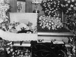 Description :4.1: LE CORPS DE J.-ODINA LEFEBVRE EST EXPOSE DANS UN CERCUEIL BORDE DE FLEURS, AU SALON FUNERAIRE. - 4.2: VUE EN PLAN ELOIGNE DU CADAVRE DE J.-ODINA LEFEBVRE, INSTALLE DANS SON CERCUEIL, ENTOURE DE FLEURS DE TOUTES SORTES. SUR LES DEUX PHOTOS...