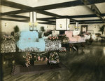 Description :DEUXIEME SALLE DE VENTE DE CERCUEILS SITUEE AU 139 RUE KING OUEST (AUJOURD'HUI 297). CERCUEILS DISPOSES DE BIAIS, EN UNE LIGNE HORIZONTALE. FLEURS EN COURONNES, BOUQUETS ET CROIX AGREMENTENT LA SALLE. PLANCHER DE BOIS FRANC ET POUTRES DE BOIS ...