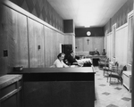 Description :INTERIEUR DU BUREAU DE H.-N. BRIEN, QUI A UNE FORME RECTANGULAIRE, SITUE AU 139 RUE KING OUEST (AUJOURD'HUI 297). EN AVANT-PLAN, UN COMPTOIR. A GAUCHE, MARIE-BERTHE GERIN-LAJOIE ET GERARD BRIEN SONT A LEUR BUREAU RESPECTIF. AU BOUT DE LA PIECE...