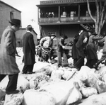 Description :DES HOMMES TRANSPORTENT UN CERCUEIL CONTENANT UN CADAVRE INCONNU. EN ARRIERE-PLAN, UNE BATISSE DE DEUX ETAGES EN BRIQUE. DES GENS SONT SUR LE BALCON.