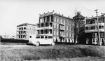 Description :UNE AMBULANCE EST STATIONNEE SUR LE TERRAIN DE L'HOPITAL ST-VINCENT-DE-PAUL. EN ARRIERE-PLAN, L'HOPITAL, UNE BATISSE DE BRIQUE DE QUATRE ETAGES. A GAUCHE, LA NOUVELLE AILE DE L'HOPITAL EST EN COURS DE CONSTRUCTION.