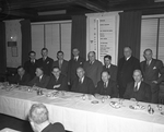 Description :QUATORZE HOMMES PLACES SUR DEUX RANGEES, DERRIERE UNE TABLE. PREMIERE RANGEE, ASSISE: L.-W. DIXON, ANCIEN PRESIDENT, MAURICE DE LOTTINVILLE, W.-C. KENNEDY, VICE-PRESIDENT DE LA COMPAGNIE FRIGIDAIRE PRODUCTS, J.-A. ARCHAMBAULT, PRESIDENT, W. GO...