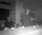 Description :FRANK-A. POULIOT, SURINTENDANT DU PACIFIQUE CANADIEN, EST DEBOUT ET PRONONCE UNE CONFERENCE. A SA GAUCHE, ASSIS, GEORGE CARR, DIRECTEUR NATIONAL DE LA CHAMBRE DE COMMERCE DU CANADA. A SA DROITE, ASSIS, J.-A. ARCHAMBAULT, PRESIDENT DE LA CHAMBR...