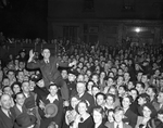 Description :MAURICE GINGUES, SUPPORTE PAR DEUX POLICIERS, SE FAIT ACCLAMER PAR LA FOULE APRES SA VICTOIRE. ENTOURANT MAURICE GINGUES, ON VOIT: J.-C. POULIN, ARMAND ROUSSEAU, DONAT JACQUES, WILFRID GREGOIRE ET GERARD MARCHESSEAU. A L'ARRIERE-PLAN, UN CAMIO...