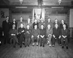 Description :DIX-SEPT HOMMES PLACES SUR DEUX RANGEES, REUNIS POUR UNE PHOTO. PREMIERE RANGEE ASSISE; A.-W. REID, EMILIEN GINGRAS, T.-G. WALSH, L.-W. DIXON, ALBERIC JULIEN, G.-D. WODSWORTH, OSCAR NAULT ET WALTER MUTCHLER. DEUXIEME RANGEE, DEBOUT: R. LARABEE...