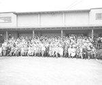 Description :GROUPE D'HOMMES ET DE FEMMES REUNIS SUR CINQ RANGEES DEVANT UN PAVILLON AU PARC JACQUES-CARTIER. PARMI EUX, PREMIERE RANGEE: SIRICE HUARD, GASTON GAGNON, MADAME BEAUCHESNE ET SON EPOUX J.-M. BEAUCHESNE, MADAME ANTONIO BEGIN ET SON EPOUX, MADAM...