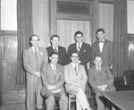 Description :DIX HOMMES REPARTIS SUR DEUX RANGEES, PLACES DERRIERE UNE TABLE. PREMIERE RANGEE ASSISE: ADRIEN PERREAULT, RICHARD CREPEAU, EDGAR CHARLAND ET HENRI-PAUL LEMIEUX. DEUXIEME RANGEE DEBOUT: LOUIS CANTIN, LUCIEN BEDARD, GEORGES GAGNON, JEAN-LOUIS B...