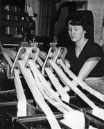 Description :UNE FEMME INCONNUE OPERE UNE ETIREUSE DE LAINE.