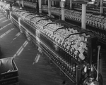 Description :GROSSES BOBINES SUBISSANT L'ETIRAGE DE LA LAINE.