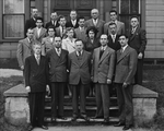 Description :SEIZE HOMMES ET TROIS FEMMES EN TENUE DE VILLE SONT DEBOUT DEVANT LES BUREAUX DES SYNDICATS CATHOLIQUES ET NATIONAUX, RUE GORDON, SUR DES MARCHES. LA SEULE PERSONNE IDENTIFIEE EST CELLE QUI SE TROUVE A L'EXTREME DROITE: M. AUDETTE, EMPLOYE A L...
